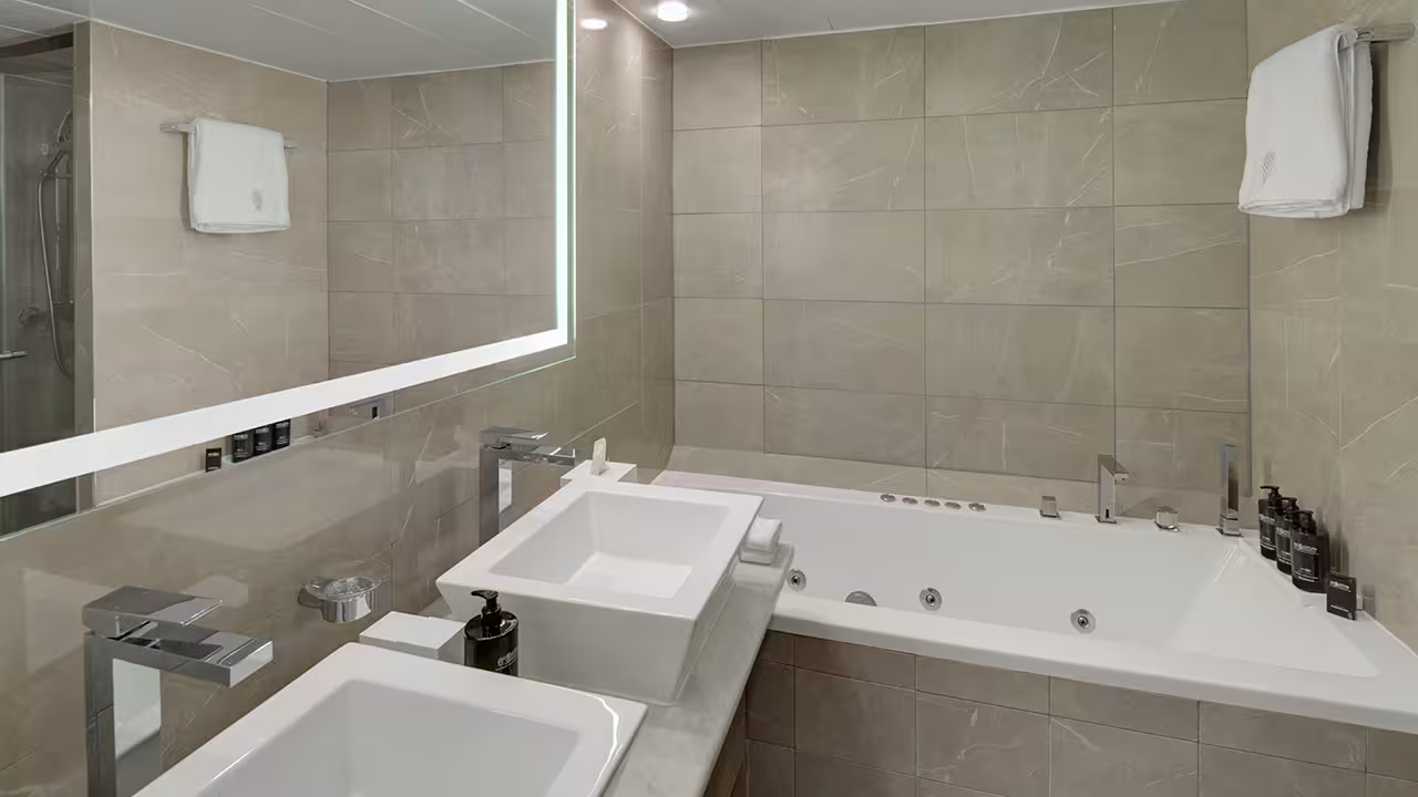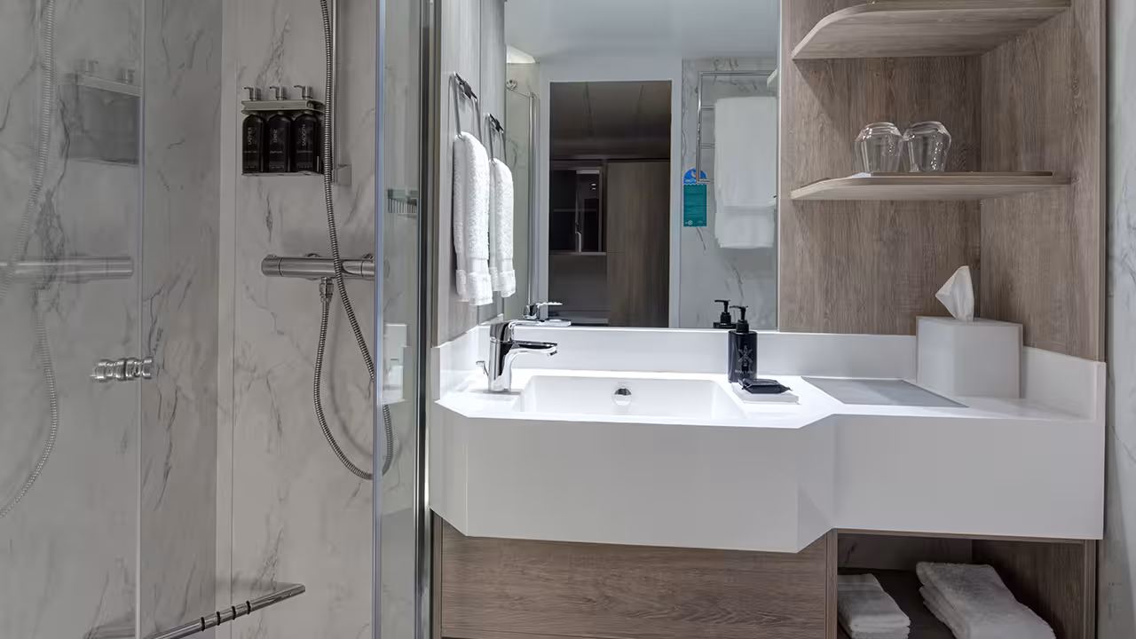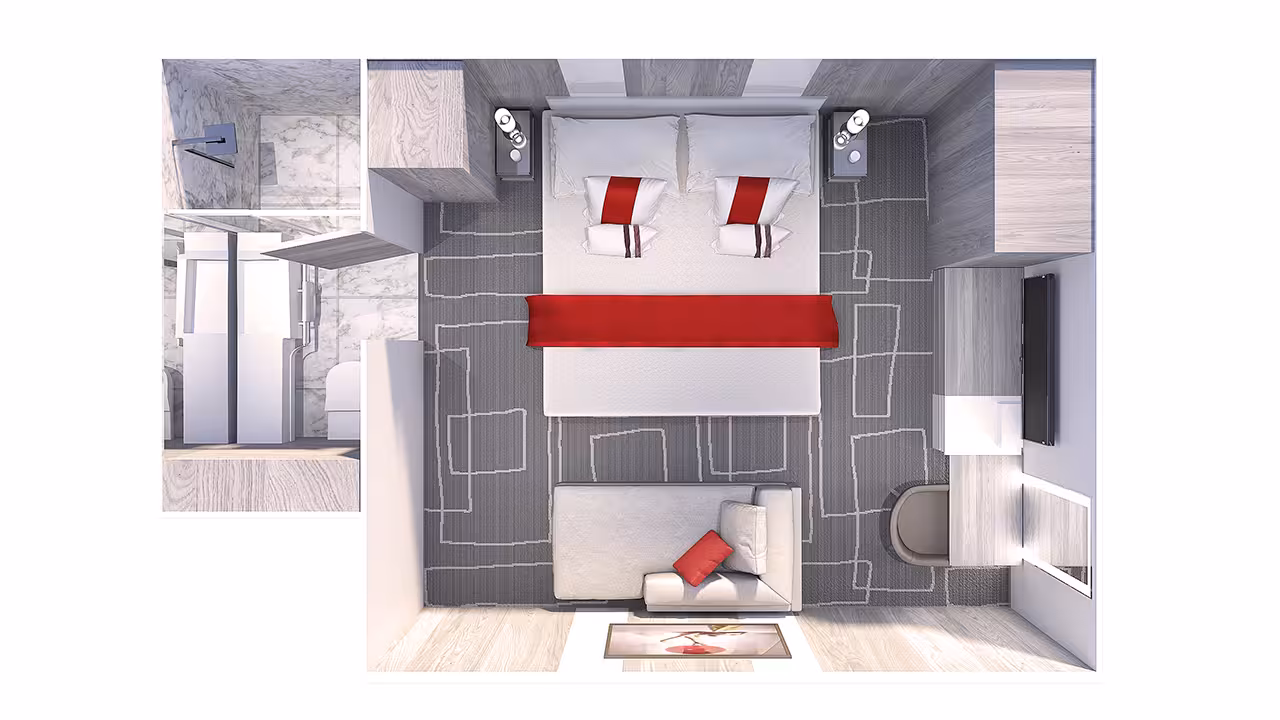 Introducing our Aqua Sky Suites, which combine our well-being inspired AquaClass experience with exclusive spaces, services, and amenities of The Retreat® Sundeck and Luminae at the Retreat to leave you more renewed than ever. These suites feature a king-sized bed with exclusive eXhale® bedding and a spacious, private veranda. Spa-inspired elements are thoughtfully infused throughout, including eco-friendly bathroom products, yoga mats, in-stateroom fitness amenities, daily bottled water service, and an enhanced air filtration system—which you’ll now find in all our staterooms.