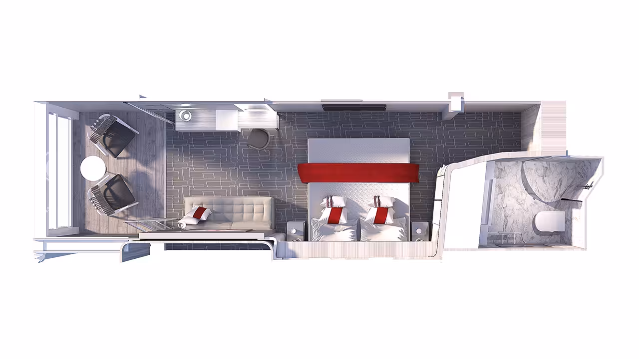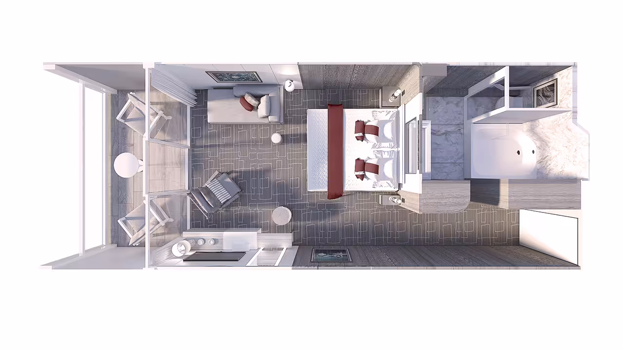 Ample indoor and outdoor space come together to create your private sanctuary at sea. Your personal veranda lets you greet the day, enjoy fresh sea breezes, and soak in breathtaking sunsets.